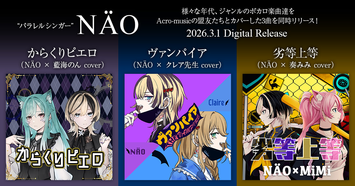 NÄO VOCALOID COVER EP「#PÄRALLEL_701」 2026年3月21日(土)発売!!